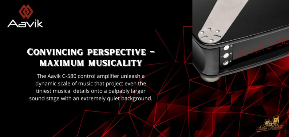 The Aavik C-580 control amplifier unleash a dynamic scale of music that project even the tiniest musical details onto a palpably larger sound stage with an extremely quiet background. Convincing perspective – maximum musicality.