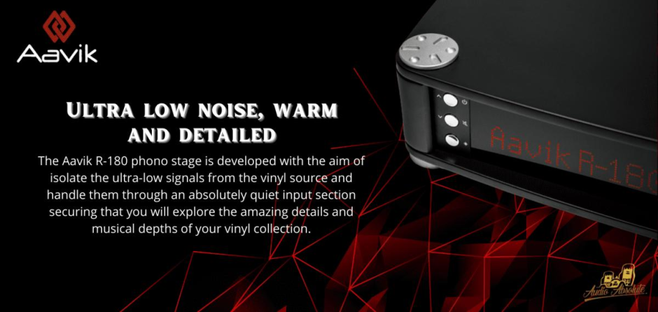 The Aavik R-180 phono stage is developed with the aim of isolate the ultra-low signals from the vinyl source and handle them through an absolutely quiet input section securing that you will explore the amazing details and musical depths of your vinyl collection. Ultra low noise, warm and detailed.