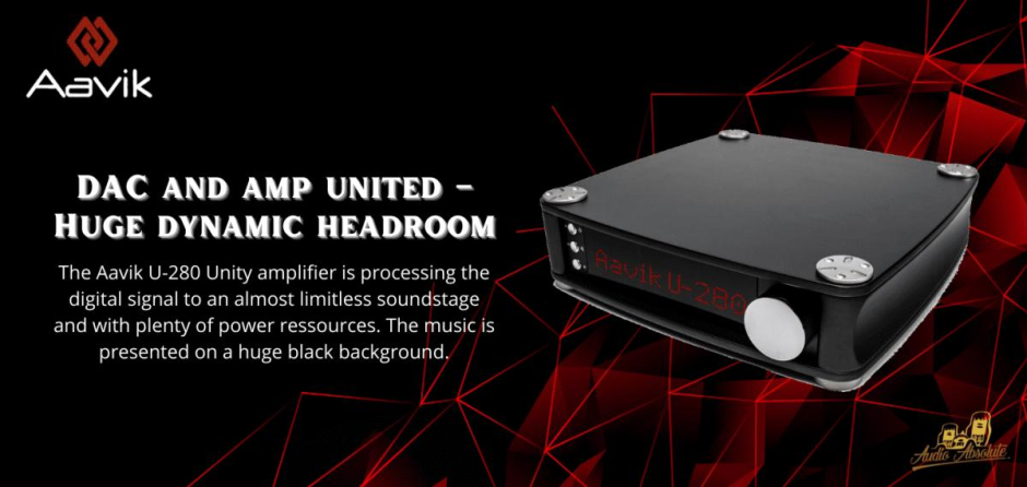 The Aavik U-280 Unity amplifier is processing the digital signal to an almost limitless soundstage and with plenty of power ressources. The music is presented on a huge black background. DAC and amp united – Huge dynamic headroom.