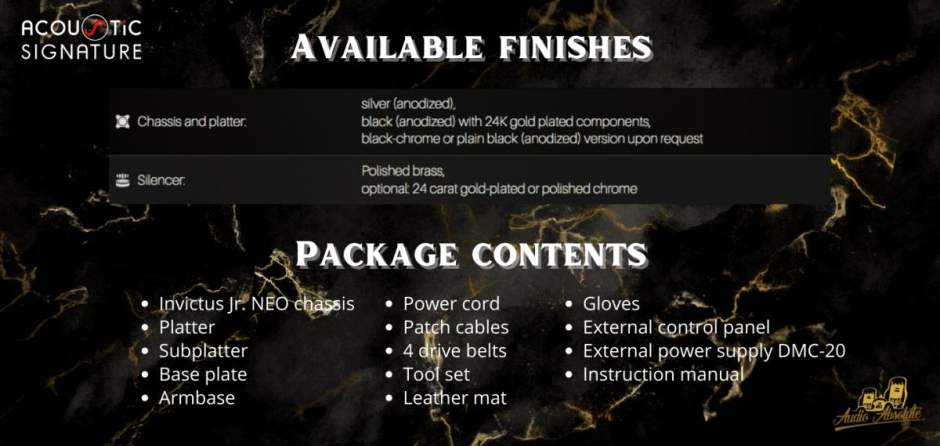 The Invictus Junior NEO was born out of the intention to offer the uncompromising concept of its ‘spiritual father’, our reference turntable Invictus NEO, in a more compact design. We have put all our knowledge of turntable construction and the essence of music into the development of the Invictus Junior NEO.