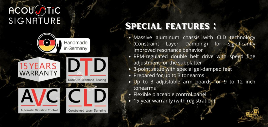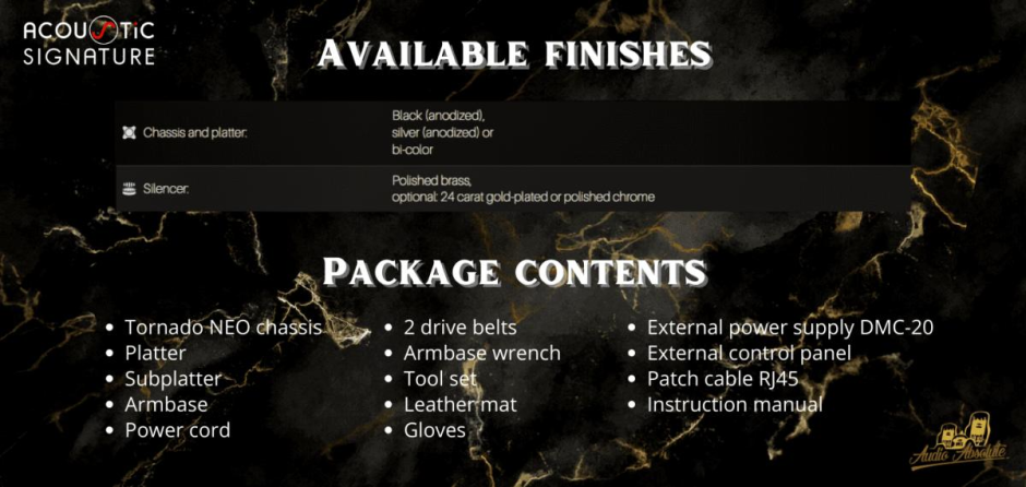 We wanted to present a super flexible high mass turntable that would unleash audiophile forces far beyond its price range. Already prepared for 3 tonearms and equipped with our very latest innovative technologies, the Acoustic Signature Tornado NEO provides a captivating musical performance that will take even the most experienced analogists by storm.