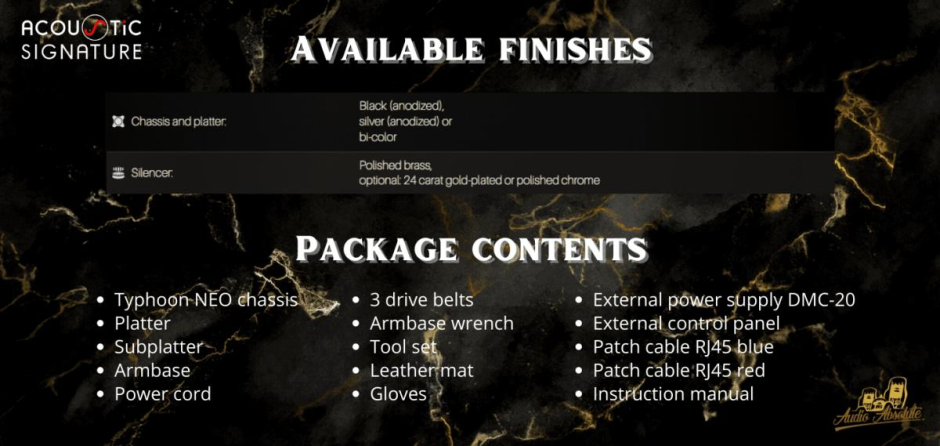 The Typhoon NEO knows almost no compromises! Prepared for 3 tonearms and equipped with the second-highest expansion stages of our newest drive system and chassis technologies, this high mass turntable will produce high audiophile waves – in the most positive sense.