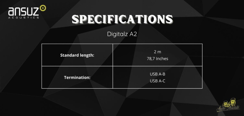 Ansuz Digitalz USB A2 cable is fitted with Ansuz’s noise reduction technology. Ansuz passive end coils radically reduce the sonic noise effects of induction and provide more energy to the music presented on a more expanded and holistic soundstage.