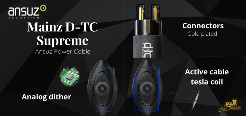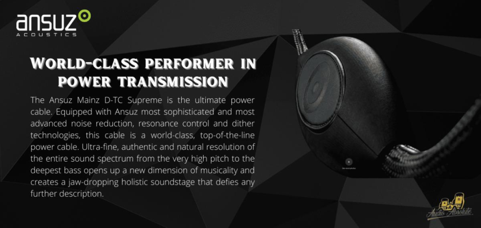 The Ansuz Mainz D-TC Supreme is the ultimate power cable. Equipped with Ansuz most sophisticated and most advanced noise reduction, resonance control and dither technologies, this cable is a world-class, top-of-the-line power cable.