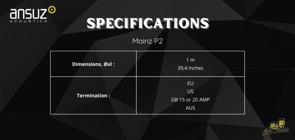 The Ansuz Mainz P2 power cable adds an even more refined musicality to the soundstage. Bass, midrange and trebles are faster and more precise. A soundstage completely unadulterated by the individual audio system, with instruments and voices that sound warm, natural and balanced.