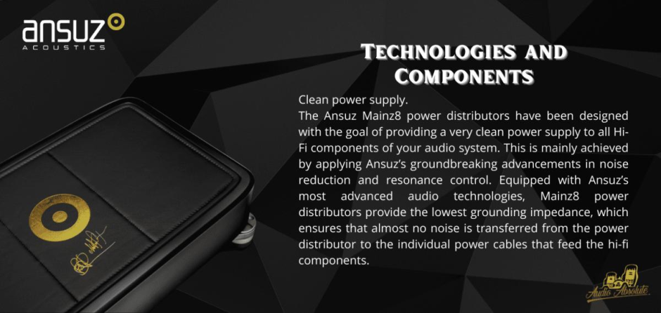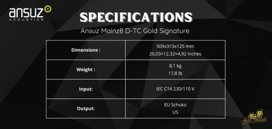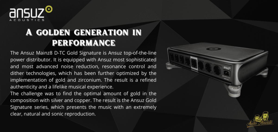 The Ansuz Mainz8 D-TC Gold Signature is Ansuz top-of-the-line power distributor. It is equipped with Ansuz most sophisticated and most advanced noise reduction, resonance control and dither technologies, which has been further optimized by the implementation of gold and zirconium.