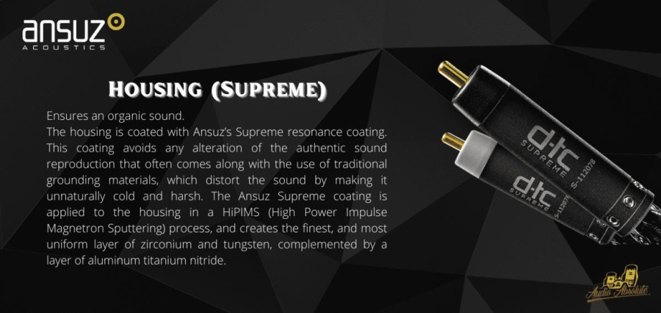 The Ansuz Signalz D-TC Supreme is the ultimate signal cable. Equipped with Ansuz most sophisticated and most advanced noise reduction and resonance control this cable is a world-class, top-of-the-line signal cable. Ultra-fine, authentic and natural resolution of the entire sound spectrum from the very high pitch to the deepest bass opens up a new dimension of musicality and creates a jaw-dropping holistic soundstage that defies any further description.