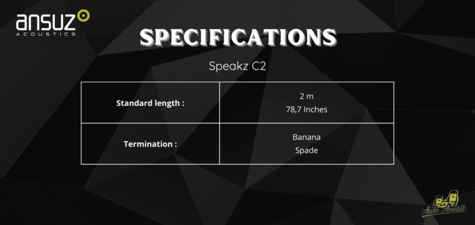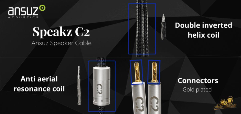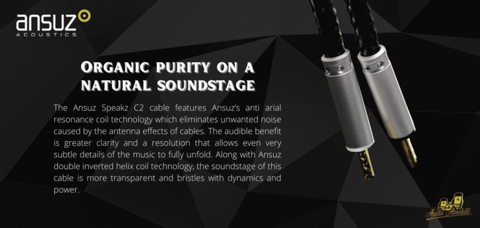 The Ansuz Speakz C2 cable features Ansuz’s anti arial resonance coil technology which eliminates unwanted noise caused by the antenna effects of cables. The audible benefit is greater clarity and a resolution that allows even very subtle details of the music to fully unfold.