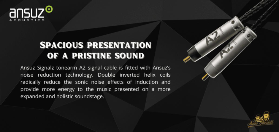 Ansuz Signalz tonearm A2 signal cable is fitted with Ansuz’s noise reduction technology. Double inverted helix coils radically reduce the sonic noise effects of induction and provide more energy to the music presented on a more expanded and holistic soundstage.
