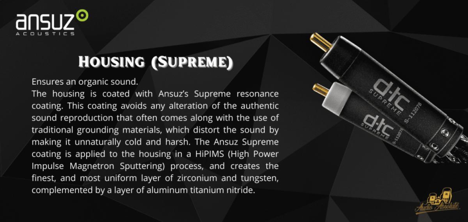The Ansuz Signalz tonearm D-TC Supreme is the ultimate signal cable. Equipped with Ansuz most sophisticated and most advanced noise reduction and resonance control this cable is a world-class, top-of-the-line signal cable. Ultra-fine, authentic and natural resolution of the entire sound spectrum from the very high pitch to the deepest bass opens up a new dimension of musicality and creates a jaw-dropping holistic soundstage that defies any further description.