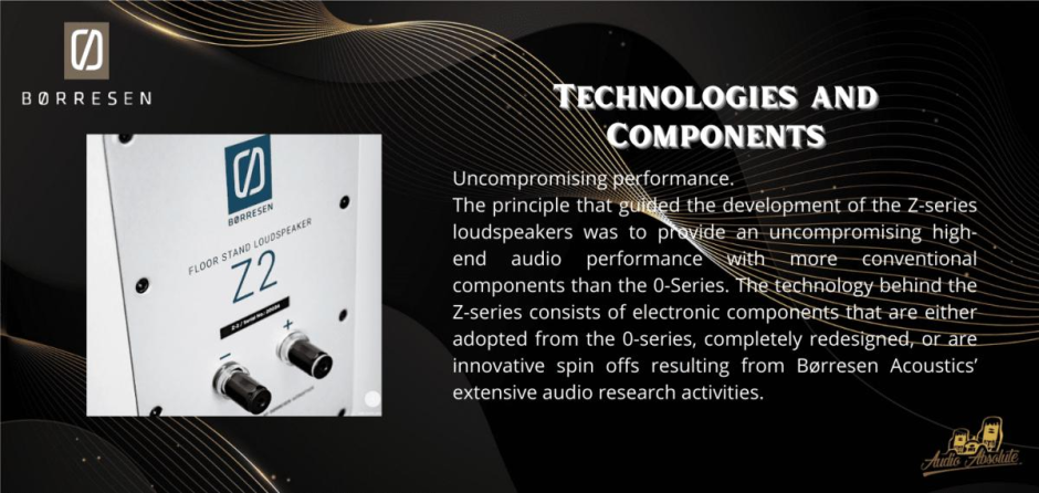 The floorstanding Børresen Z2 speaker unfolds its balanced and refined musicality with a remarkable natural ease. A clear and undistorted dynamic sound performance reaching from the upper pitches to the lower bass impart any music with an unprecedented authenticity.