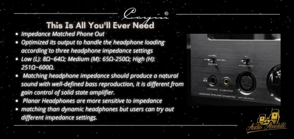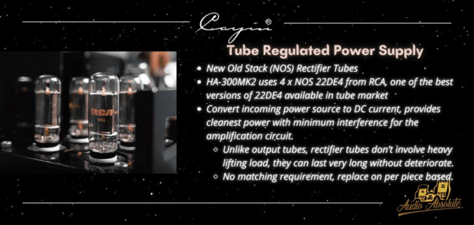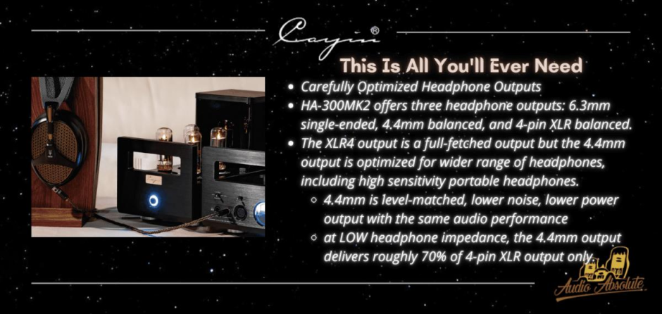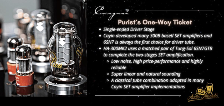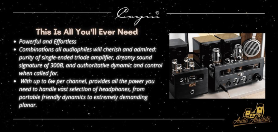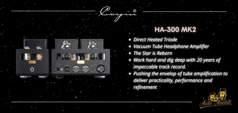 Cayin HA-300 MK2, Direct Heated Triode Vacuum Tube Headphone Amplifier. The Star is Reborn. Work hard and dig deep with 20 years of impeccable track reccord. Pushing the envelop of tube amplification to deliver practicality, performance and refinement.