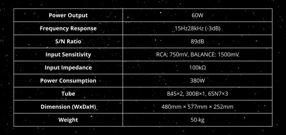 Hand-made construction with the finest point-to-point wiring. EI output transformer with wide bandwidth and push transformer are applied. Specially designed toroid transformer for power supply. One piece of 6SN7 has been used in the preamp stage for voltage regulation. Two pieces of 6SN7 has been used for voltage amplification.