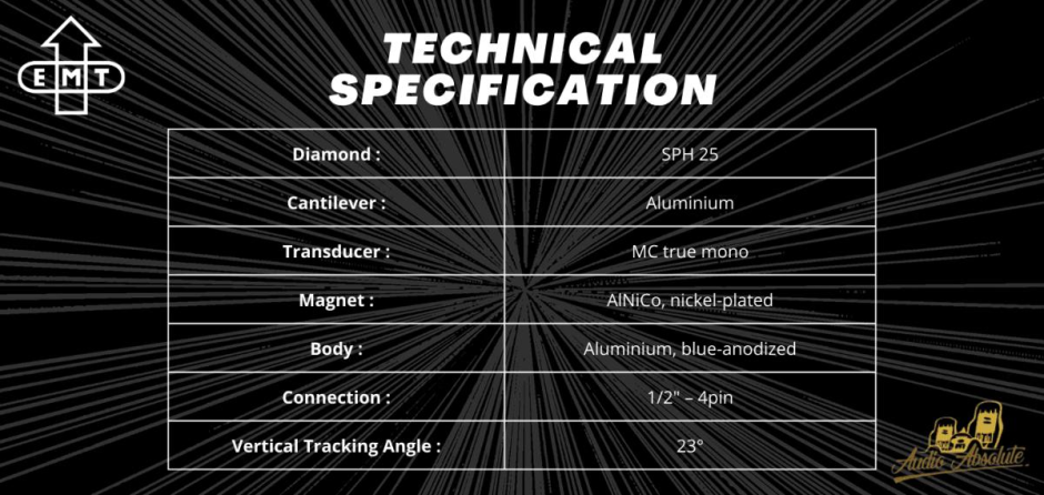 EMT HMD 025 is features our traditional true mono moving-coil generator. The new body design makes it possible to bring professional EMT technology to your personal hi-fi system, letting you enjoy the intoxicating musicality of this outstanding transducer.