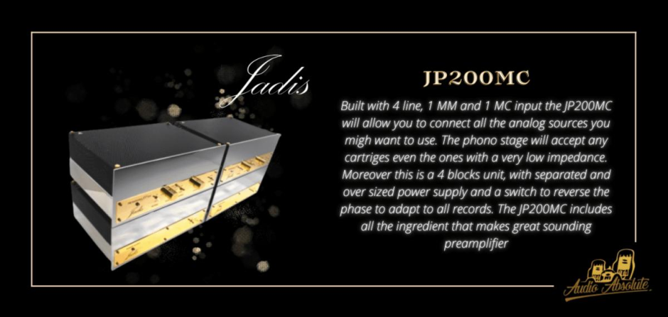 Jadis JP200MC will allow you to connect all the analog sources you migh want to use. The phono stage will accept any cartriges even the ones with a very low impedance. Moreover this is a 4 blocks unit, with separated and over sized power supply and a switch to reverse the phase to adapt to all records.