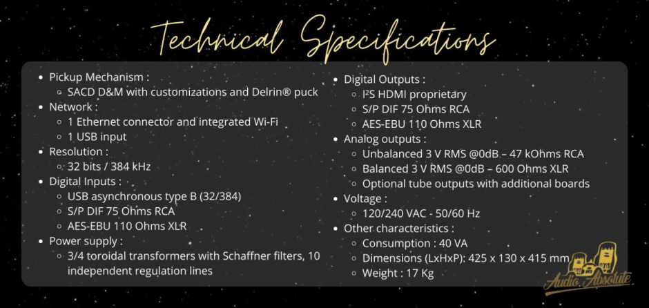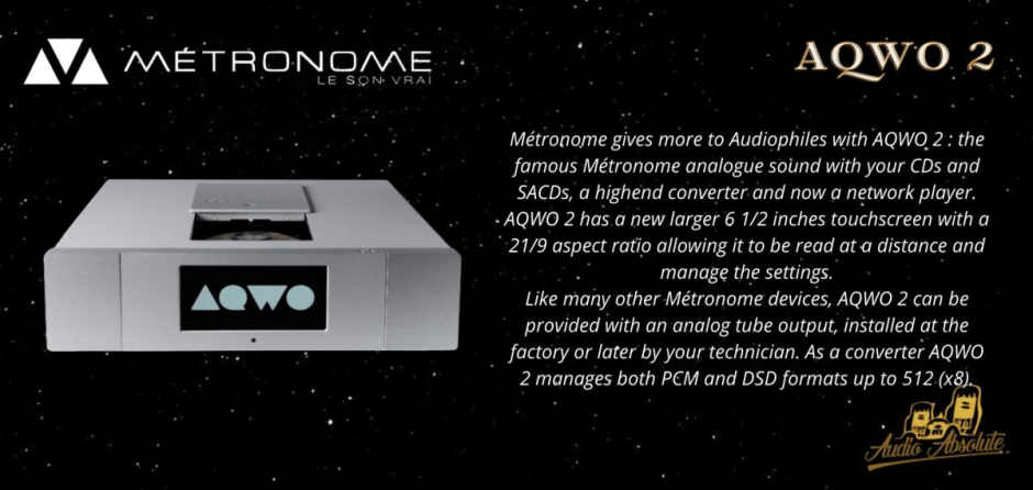 Métronome gives more to Audiophiles with AQWO 2 : the famous Métronome analogue sound with your CDs and SACDs, a highend converter and now a network player. AQWO 2 has a new larger 6 1/2 inches touchscreen with a 21/9 aspect ratio allowing it to be read at a distance and manage the settings.