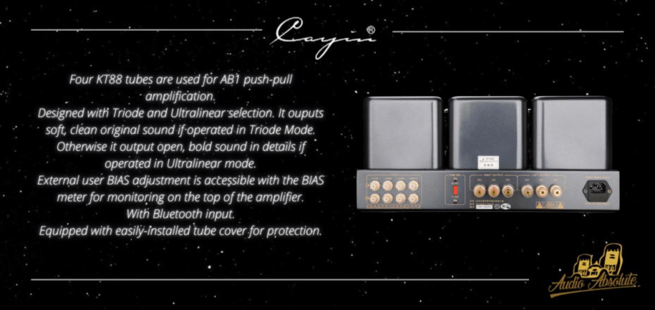 Cayin MT-50 is Tube amplifier hand-made construction with the finest point-to-point wiring. Two EI output transfomer with wide bandwidth are applied. Specially designed toroid transformer for power supply. Audio grade Takman carbon resistors for a better sound.