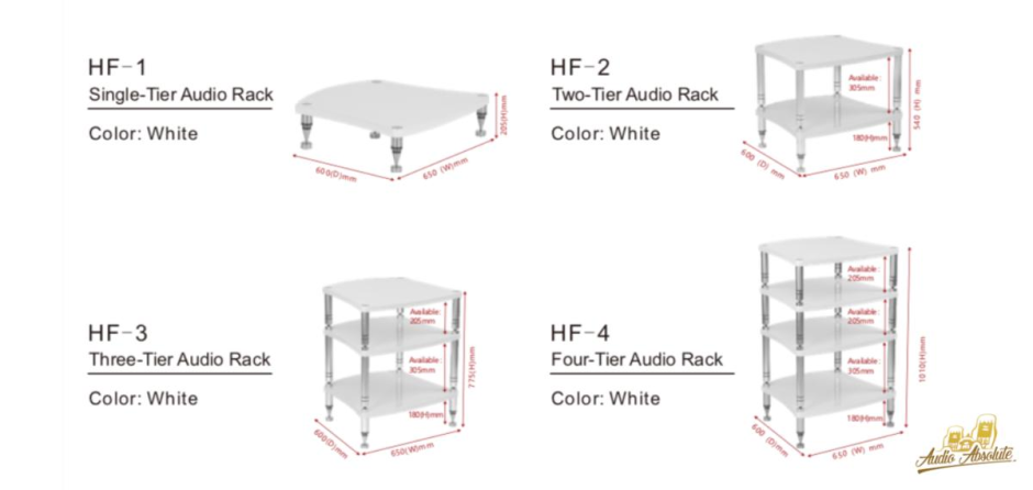 HF-2 is a Two-Tier Audio Rack. The HF series audio rack is crafted with superior metal materials and wood, utilizing a rotating coupling design rather than welding for connection. The four sturdy stainless steel columns feature adjustable height spikes at the base, providing stability and clarity in sound projection.