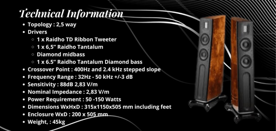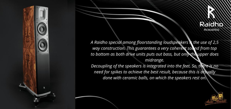 Raidho TD2.2 takes the TD-series to the next level. A Raidho special among floorstanding loudspeakers is the use of 2,5 way construction. This guarantees a very coherent sound from top to bottom as both drive units puts out bass, but only the upper does midrange.