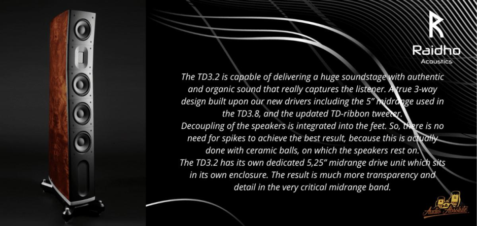 Raidho TD3.2 is capable of delivering a huge soundstage with authentic and organic sound that really captures the listener. A true 3-way design built upon our new drivers including the 5” midrange, and the updated TD-ribbon tweeter. This model has the power to surprise with both looks and sound.