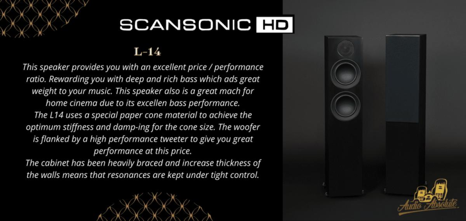 Scansonic HD L-14 uses a special paper cone material to achieve the optimum stiffness and damp-ing for the cone size. The woofer is flanked by a high performance tweeter to give you great performance at this price.