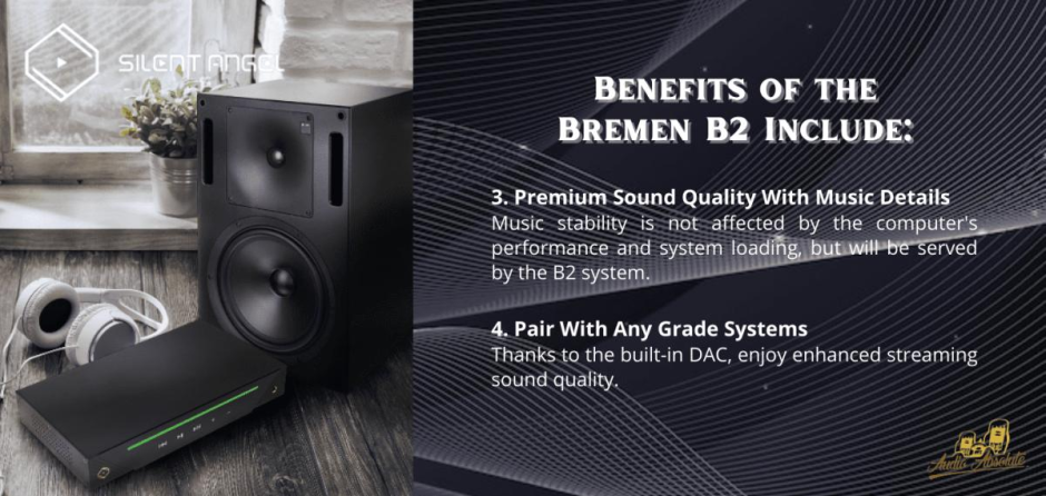Silent Angel’s Bremen B2 streamer is an independent player system with numerous built-in capabilities. It can replace mobile phones or computers as a streaming player. It can operate independently and play stably without other devices or turning on a computer.