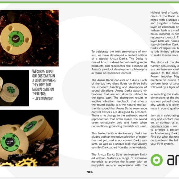 เพื่อเป็นการเฉลิมฉลองครบรอบ 10 ปีของ Ansuz พวกเขาได้พัฒนา Ansuz Anniversary Darkz รุ่นพิเศษ Limited Edition ซึ่งมีจำนวนจำกัด Darkz เป็นหนึ่งในผลิตภัณฑ์เครื่องเสียงที่ขายดีที่สุดของ Ansuz และโดดเด่นในเรื่องของการควบคุมเสียงสะท้อน